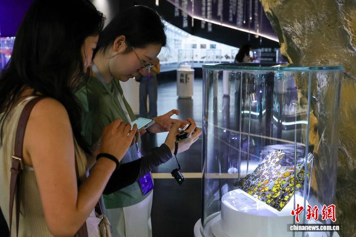 4月14日,参与“启局之年观中原·怒放自贸港”收集中心传达举动的国内中媒介人走入海北文昌极星陨石专物馆探秘。该馆以“陨石迷信+航天探究”为要旨,铺出400余件名贵陨石标原,应用百般化铺旧体例,让观光者直觉感触感染陨石魅力取寰宇之众多。图为中籍收集主播安特用脚机拍摄陨石标原。中新社记者 骆云飞 摄